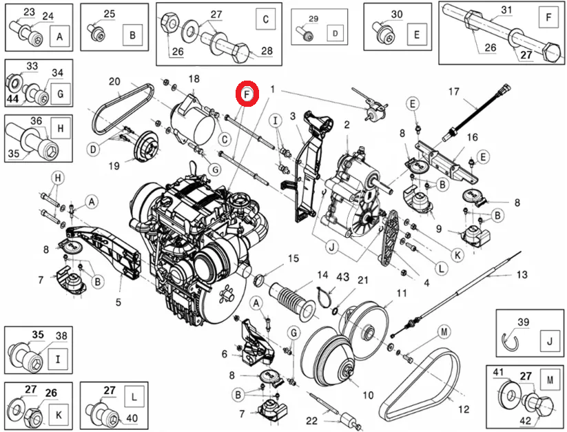 Axe de boite de vitesse avec motorisation Lombardini Progress