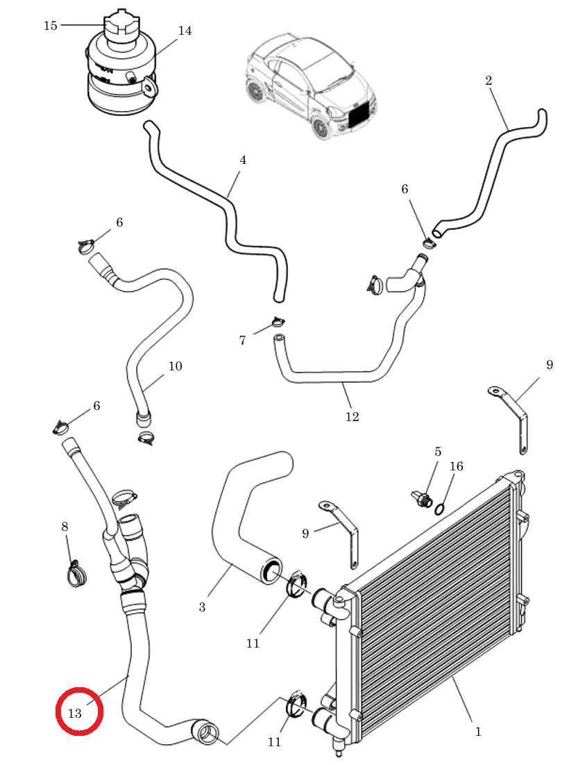 Durite inférieure de radiateur se monte sur MICROCAR MGO 1 MGO 2 M8 F8C, LIGIER JSRC, MOTEUR LOMBARDINI FOCS PROGRESS