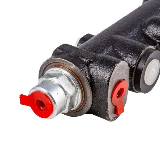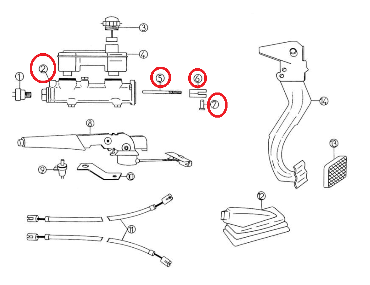 Le maître-cylindre transforme la force exercée du pied sur la pédale de frein en pression hydraulique. Elle est ensuite transmise aux roues avant et arrière de la voiture sans permis grâce aux flexibles de freins.