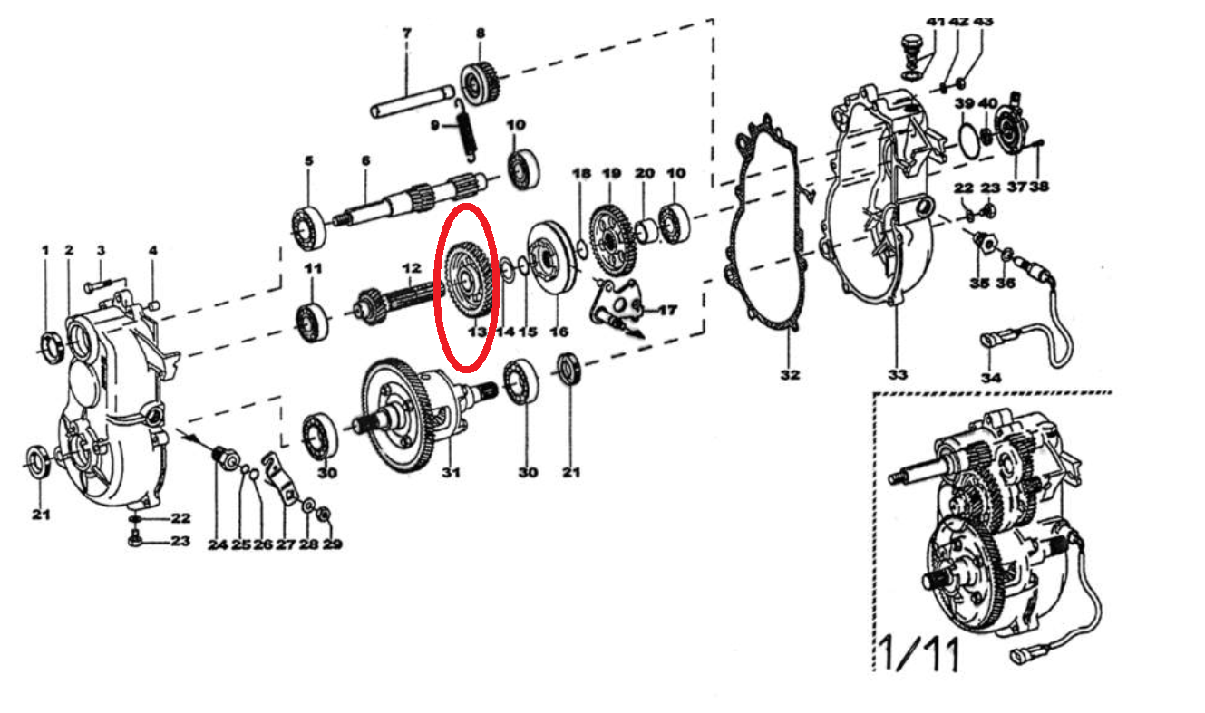 Engrenage qui s’adapte sur boîte COMEX pour voiture sans permis.