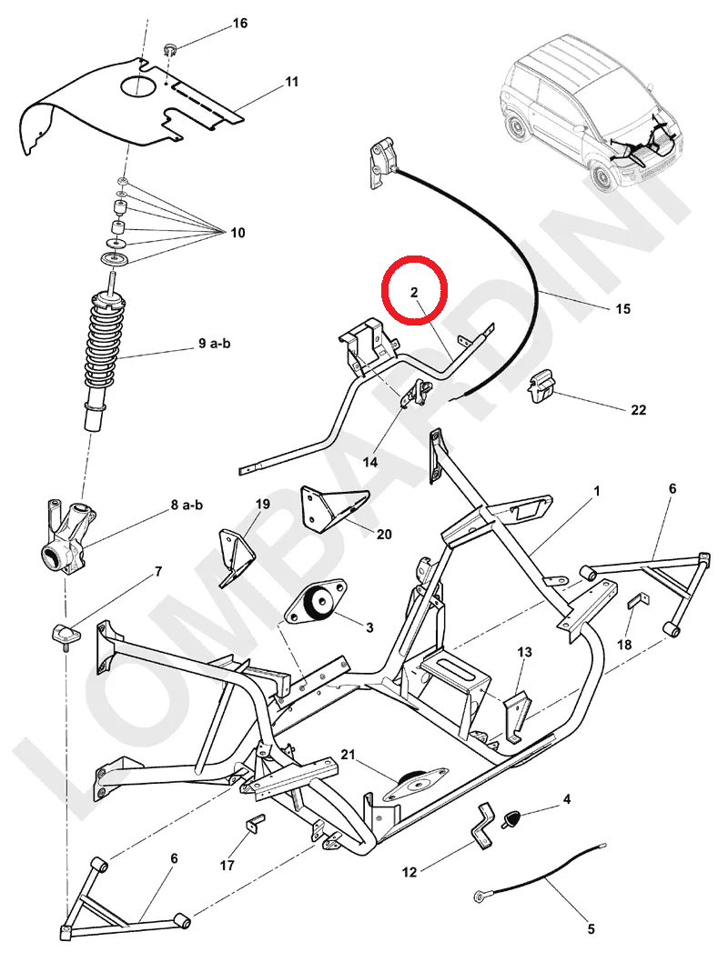 Traverse qui s’adapte sur Microcar MC1 et MC2 moteur LOMBARDINI.